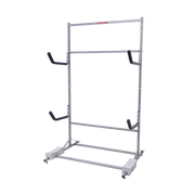 Built with powder coated heavy-duty steel, this three kayak self-standing boat storage rack is easy to assemble and will last for years. Fully padded J-style holders gently protect the kayaks from abrasion and hull distortion.