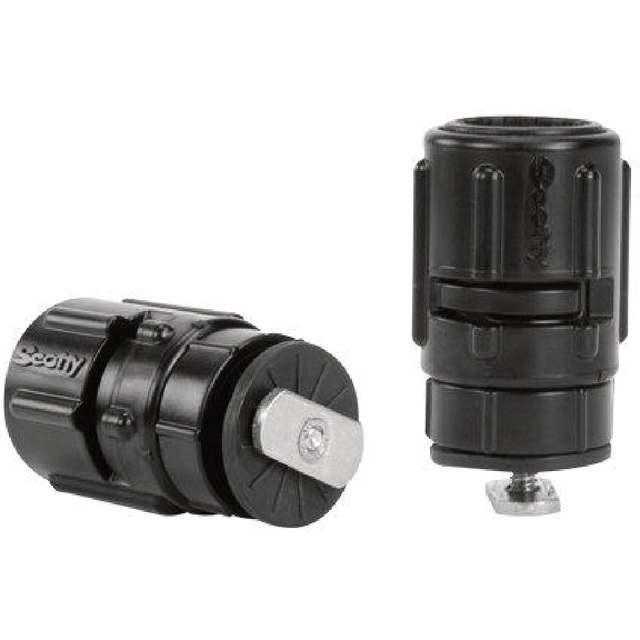 - The Scotty 438 Gear-Head Track Adapter quickly slides into place and locks down your post mounted Scotty Rod Holders and Accessories.